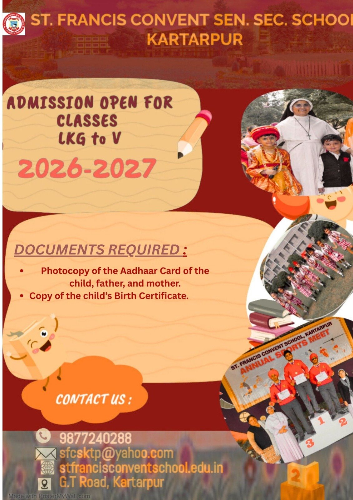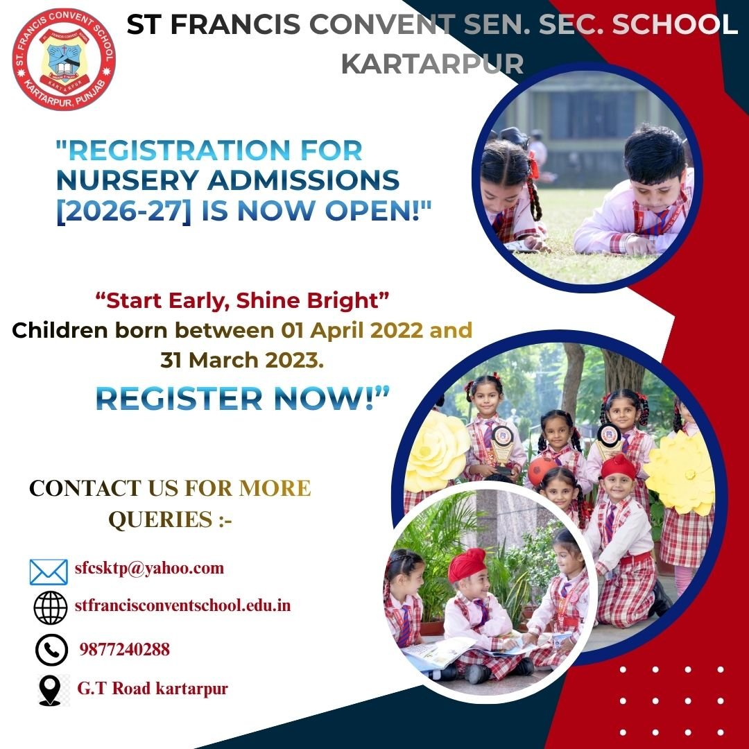 St. Francis Convent Sen. Sec. School, Kartarpur is founded under the aegis of the Diocese of Jalandhar and is run by the Franciscan Clarist Sisters It is a minority community School enjoying the nights and privileges contained in Articles 29 and 30 of the Indian Constitution.The School is open to boys and girls of all castes and creeds It aims at building up a new generation which will serve God and man in truth, ready to face all the problems of life and challenges of the times with determination and courage.The school is named after St Francis of Assisi its heavenly patron St Francis is a Christian saint hailed all over the world as the spokesman of universal love and brotherhood